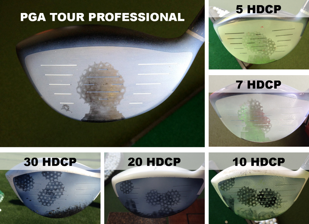 There’s a pretty telling article on GolfWRX.com (text link at bottom of page) detailing the ball-striking position on the club face as it’s relative to the player’s handicap.