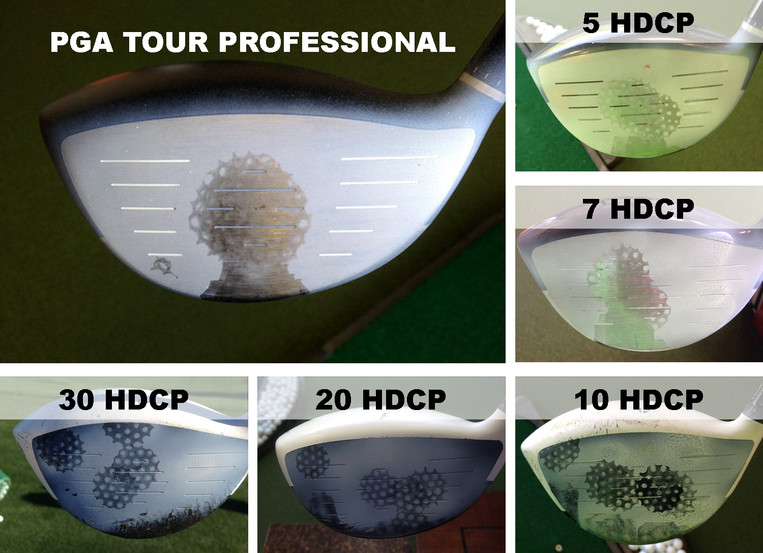 There’s a pretty telling article on GolfWRX.com (text link at bottom of page) detailing the ball-striking position on the club face as it’s relative to the player’s handicap.